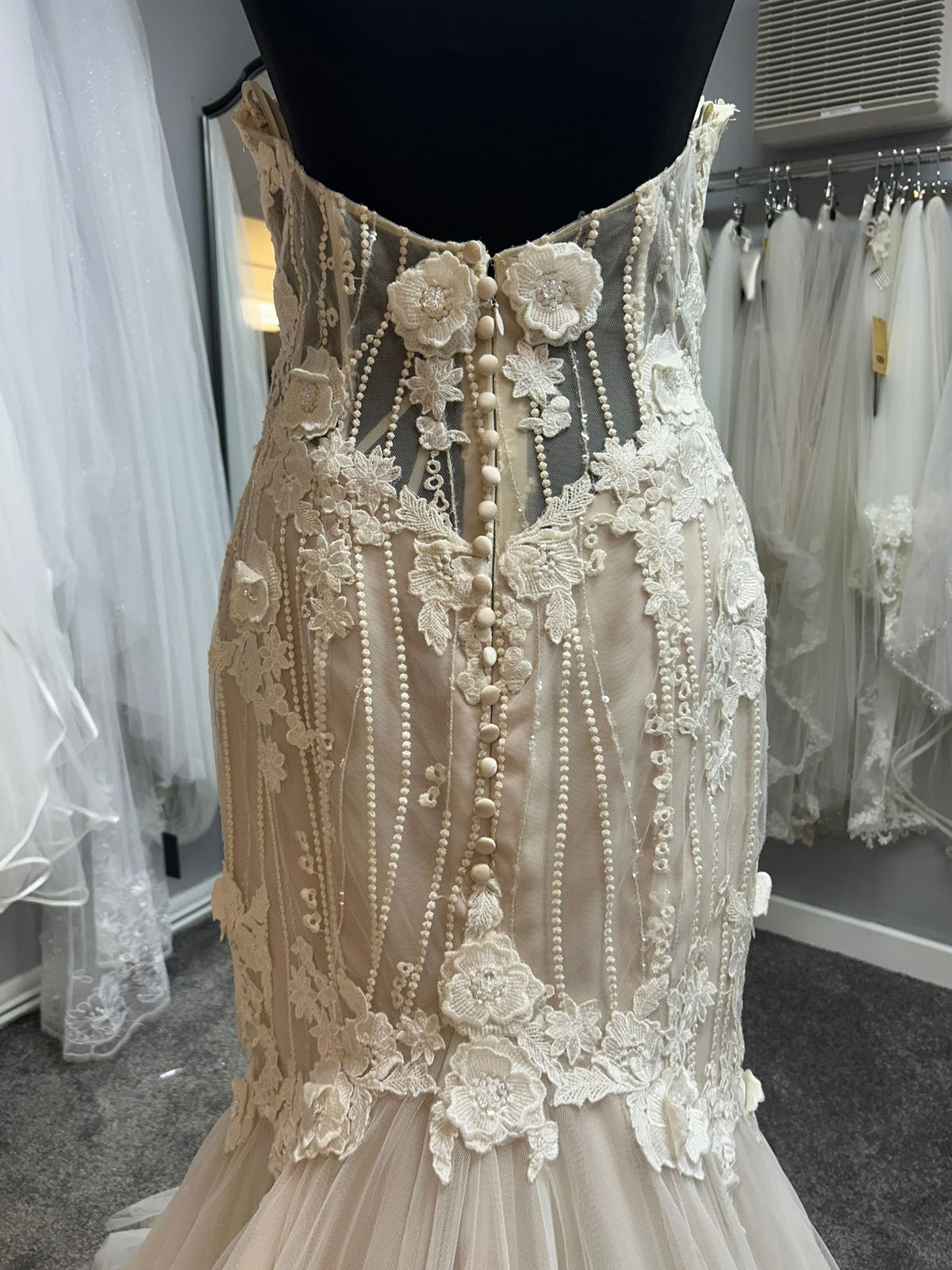 The Kamala gown by Kenneth Winston in UK size 6/8 is a beautifully designed wedding dress, perfect for brides seeking timeless elegance.