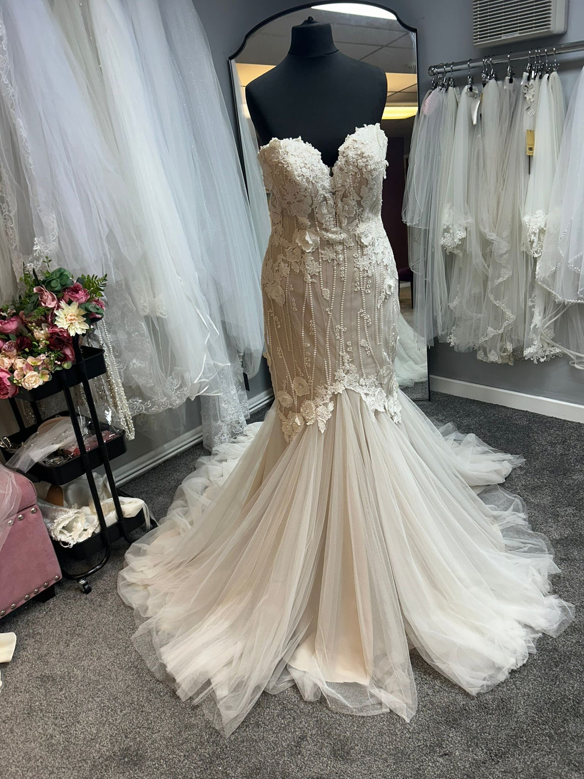 Available at Once Upon a Budget in Cwmbran, South Wales, where designer dresses meet exceptional value.