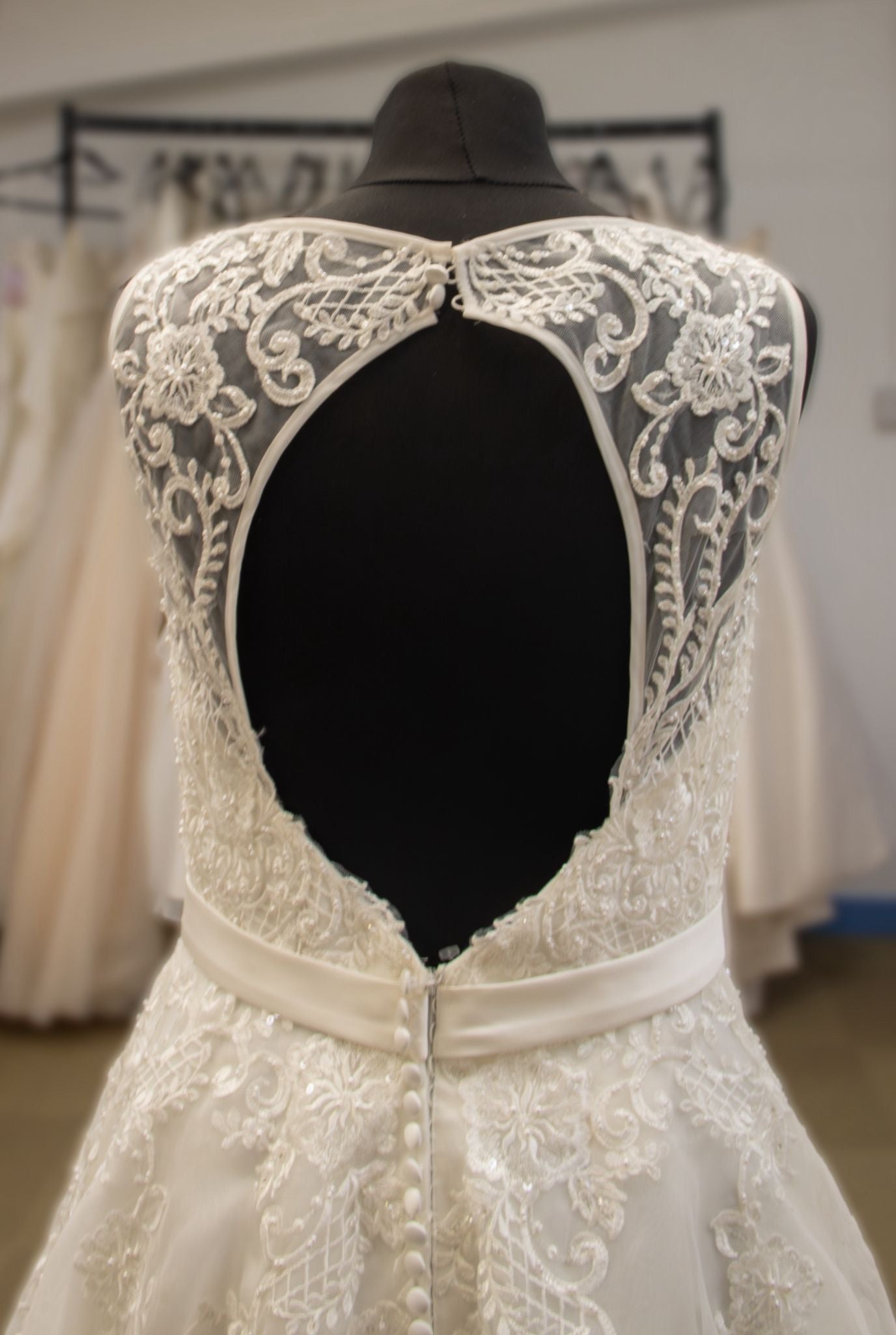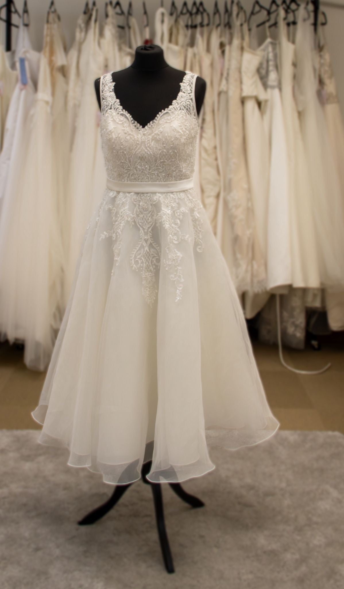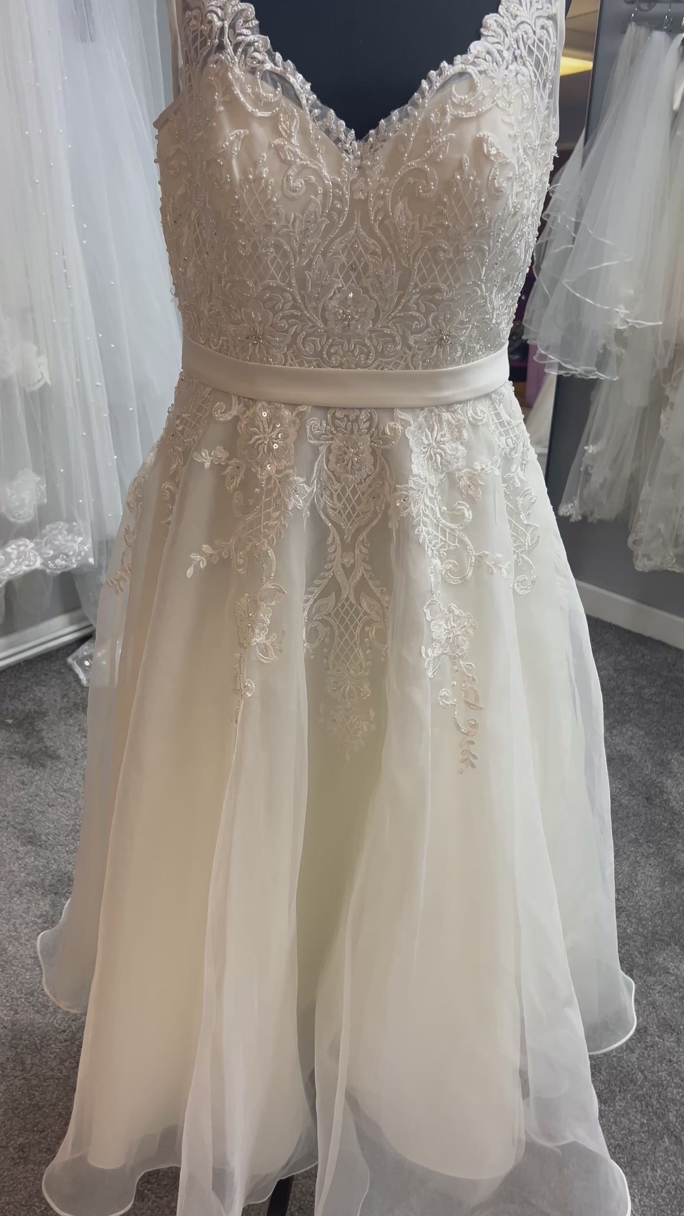 The stunning keyhole back detail adds just the right touch of drama and sophistication, creating visual interest that will have your guests in awe as you walk down the aisle. The elegant satin belt cinches your waist beautifully and adds the perfect finishing touch to this already gorgeous design. This dress is ideal for brides who want something a little different from traditional floor-length gowns - the tea-length style is perfect for showing off your gorgeous wedding shoes and allows for easy movement throughout your celebration.