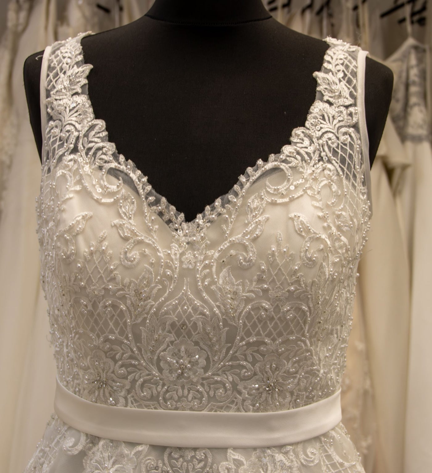 This absolutely stunning Ella Rosa gown is the perfect blend of vintage charm and modern elegance! The gorgeous tea-length design in luxurious lace and organza creates the most romantic and playful look that's perfect for dancing the night away. The fitted V-neck bodice features beautiful lace and intricate beading that catches the light from every angle, while the flattering silhouette hugs your curves perfectly before flowing into an elegant A-line skirt.